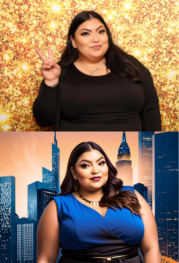 Create a [scene] featuring a [persona] with a [vibe], surrounded by [industry elements], in a [location], with an [aura color] glow. Their superpower is [aspiration/superpower]. Make it radiant, empowering, and visually striking.