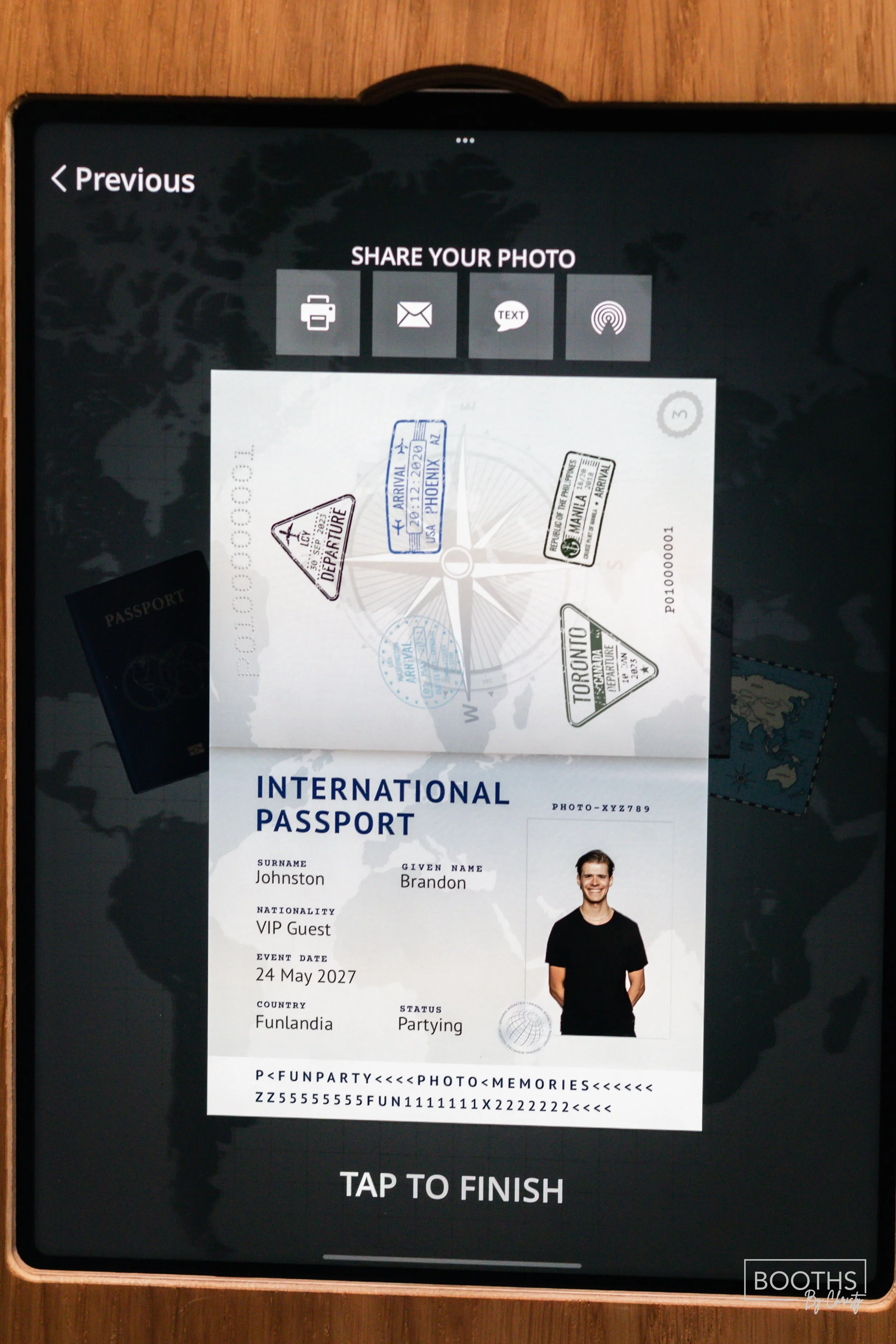 Guests receive prints that mimic real passports — but better. Branded overlays, custom stamps, and your event’s location or theme all integrated seamlessly.AI + Green Screen Integration