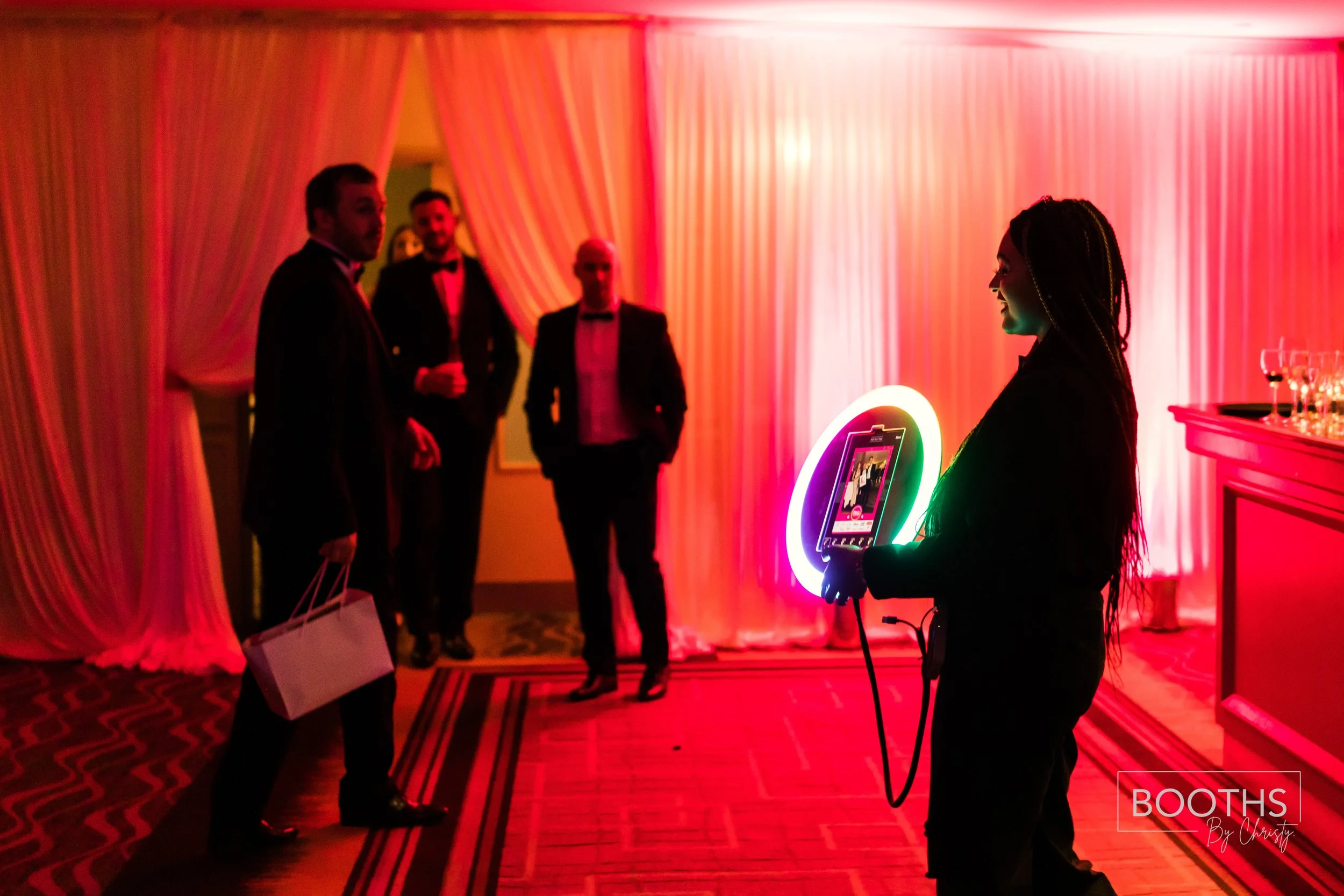 Imagine a photo booth that comes to you. Booths by Christy’s Roaming Booth is not confined to a corner—it moves with the moment. Our professional photographers glide through your event with sleek mobile devices, capturing spontaneous smiles, chic group shots, and behind-the-scenes magic in real time.